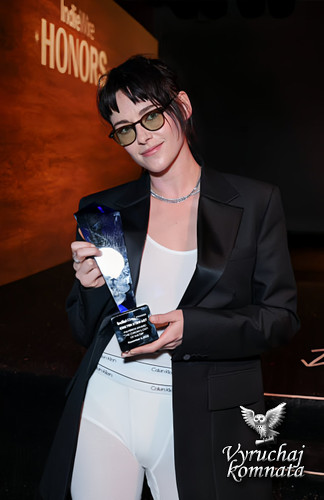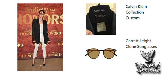 Выйдя на церемонию вручения премии IndieWire Honors Winter Film Awards 2025 4 декабря в Лос-Анджелесе, актриса, стилизованная Тарой Свеннен, выбрала комплект белых кальсон Calvin Klein и майку в тон, а сверху надела свободный чёрный атласный блейзер. Этот необычный образ она дополнила чёрными туфлями с острым носком, бриллиантовым колье и очками с тонированными стеклами.