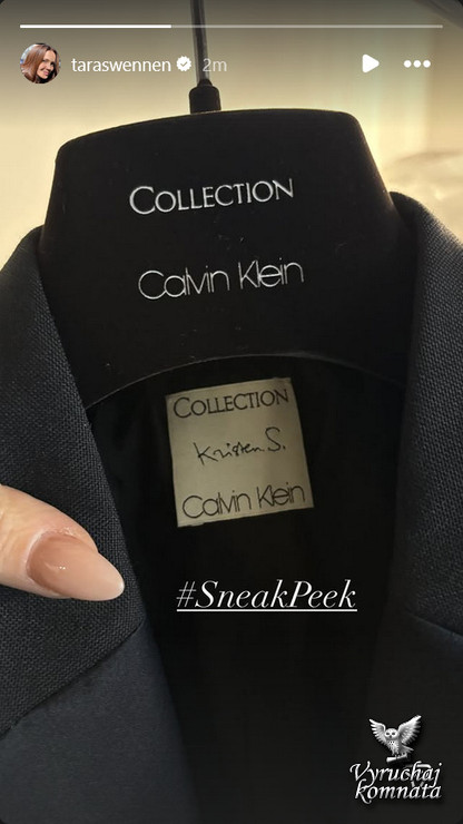 Номинированная на премию «Оскар» актриса, чей образ создала Тара Свеннен, была одета в чёрный шерстяной блейзер Calvin Klein Collection, сшитый на заказ , с боди из хлопка и шёлка, леггинсы и плавки. Леггинсы и плавки дебютировали на показе коллекции pret -a-wear весна-лето 2026 на Неделе моды в Нью-Йорке в сентябре.