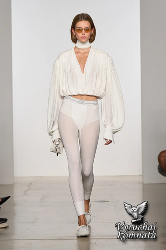 Чуть больше десяти лет назад, в самый разгар кампании #mycalvins, не было ничего круче, чем прогуливаться с эластичным поясом нижнего белья Calvin Klein, выглядывающим из-под брюк. Когда Вероника Леони в начале этого года возродила некогда забытый бренд, она тоже попыталась возродить культовый пояс бренда, представив его на подиуме в весенней коллекции 2026 года в самых разных интерпретациях: тканое платье, солнцезащитные очки с козырьками и прозрачные кальсоны. Но многие задавались вопросом, кто же покупатель?