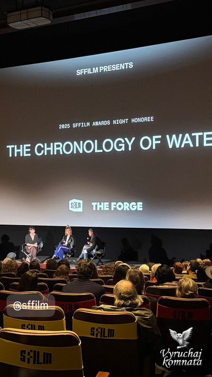 @SFFILM лауреат премии имени Нион МакЭвой и Лесли Берриман за лучшее повествование, режиссер Кристен Стюар, которую ей вручила Имоджен ПУтс главная актриса в ее фильме «Хронология воды»
