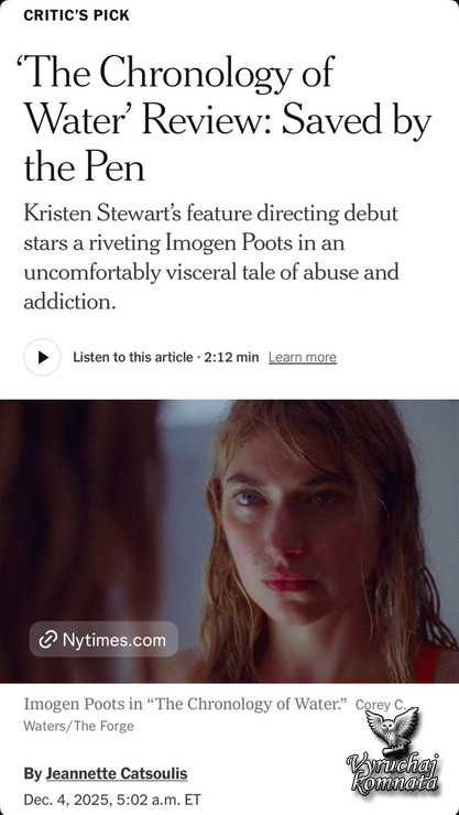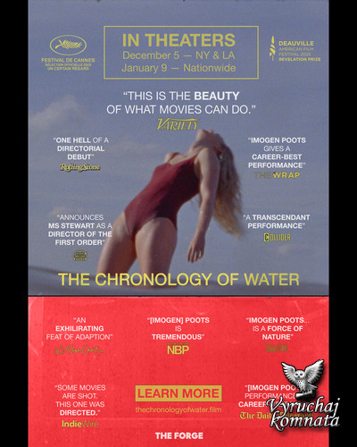 «Хронология воды» теперь выходит в прокат в США после успешных премьер в Каннах и Лондоне. Не пропустите премьеру в кинотеатрах.