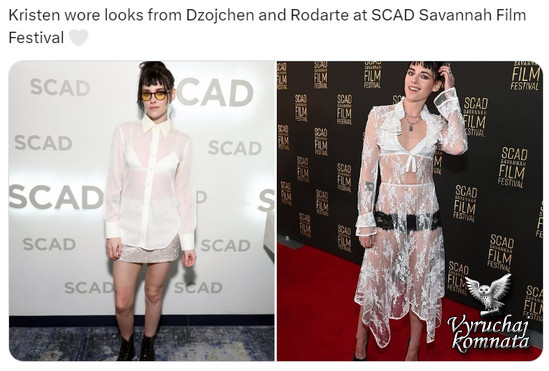 Кристен появилась в образах от Dzojchen и Rodarte на кинофестивале SCAD Savannah.