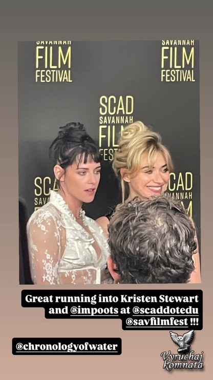jilliandempsey: «Так горжусь, что Кристен Стюарт получила награду «Восходящая звезда» на кинофестивале SCAD в Саванне за фильм «Хронология воды». Мне посчастливилось увидеть невероятную игру Имоджен Путс в этом честном, мятежном и прекрасном фильме глазами режиссёра Кристен».
