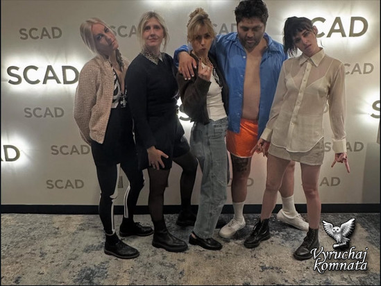 В других местах фестиваля выдающаяся актриса и режиссёр вновь предстала в прозрачном образе — на этот раз в рубашке на пуговицах. Безупречно сшитый наряд, любезно предоставленный Dzojchen, был подобран Свеннен в сочетании с топом-бра и бархатной мини-юбкой. Она дополнила образ солнцезащитными очками Garrett Leight, высоким хвостом, массивными ботинками Dr. Martens и самым главным аксессуаром: кубком SCAD.