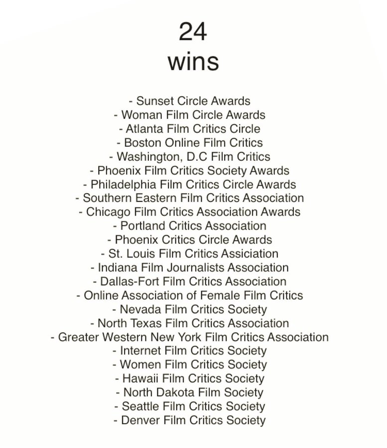 Победитель в номинациях «Лучшая женская роль» Общества кинокритиков Северной Дакоты