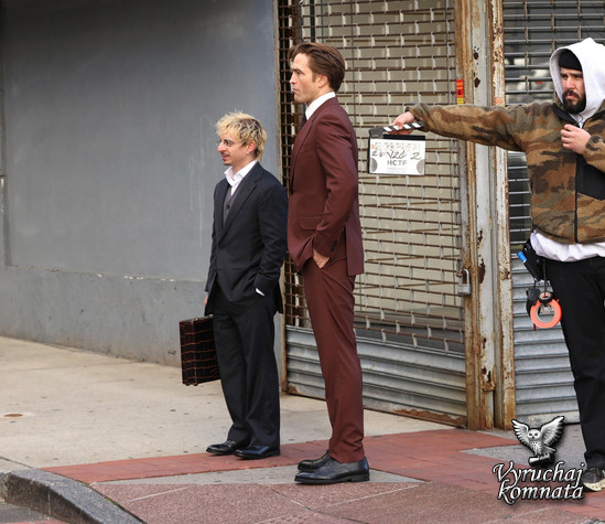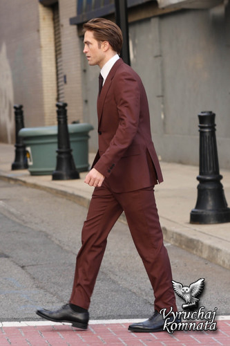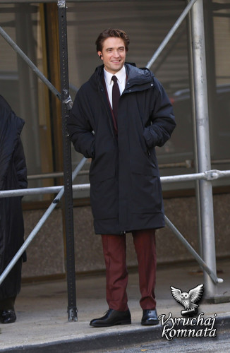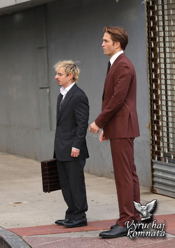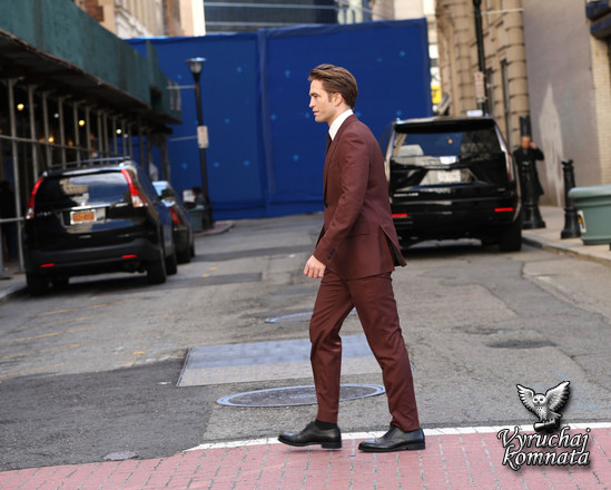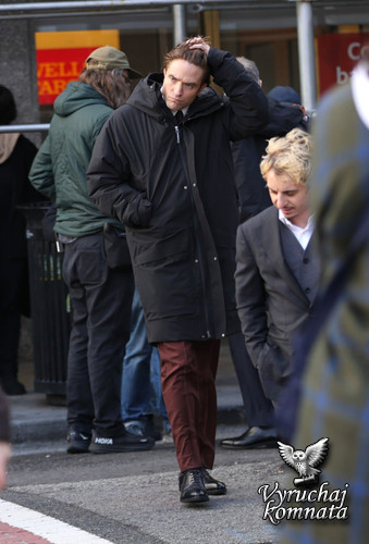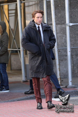 Роберт Паттинсон на съемках фильма «НАЧИНАЕТСЯ ПОТОП» сегодня в Ньюарке, штат Нью-Джерси!