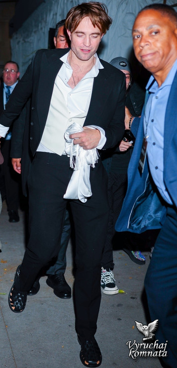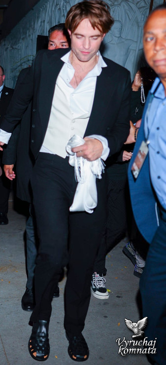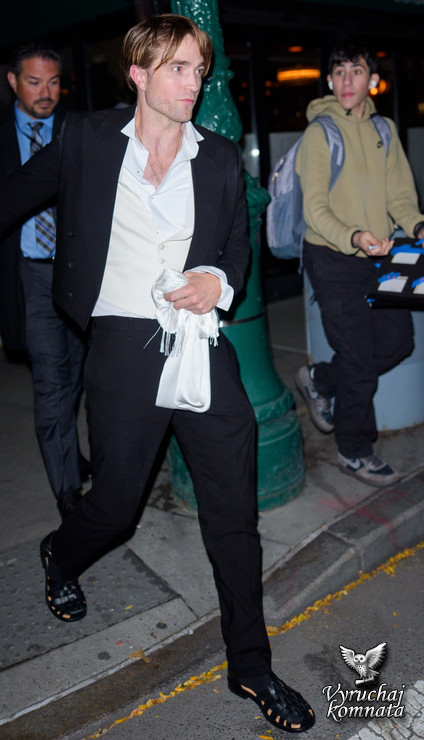 В Нью-Йорке Паттинсон отважился на выбор обуви, выбрав вполне официальный образ: чёрные сандалии с вырезами, которые казались идеальным спутником для загара и пива в 11 утра на далёком греческом острове. И, конечно же, носки и сандалии — не новость. Tyler, the Creator делает это уже очень давно. К тому же, такие сандалии можно найти везде, от Cosmopolitan до Versace. Но это красная дорожка, то есть место, где носки и сандалии обычно не приветствуются.