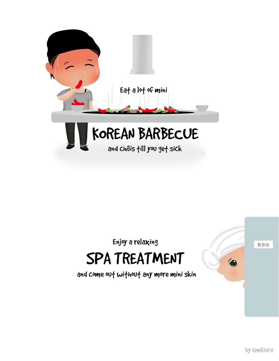 Иллюстратор IamKiera снова порадовала нас чудесными картинками с Кристен в миниатюре, изобразив историю пребывания Крис в Сеуле: