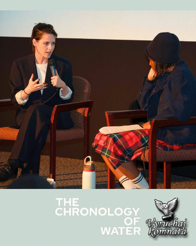 «Хронология воды», режиссёрский дебют Стюарт, снят по мотивам мемуаров Лидии Юкнавич и рассказывает историю женщины, обретающей голос после тяжёлого детства, отмеченного насилием и наркозависимостью. Премьера фильма состоялась в Каннах в мае, а ограниченный прокат запланирован на декабрь.