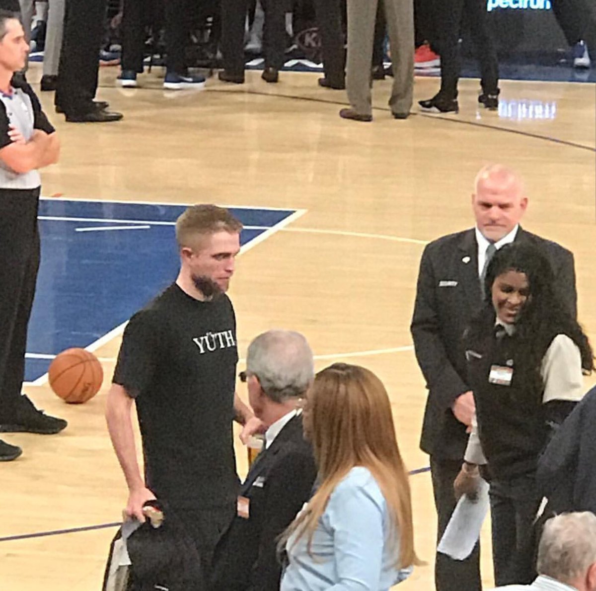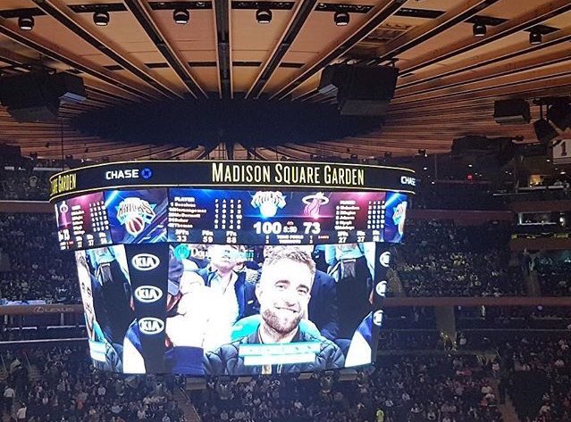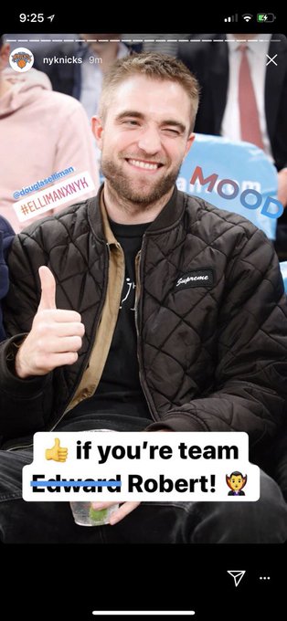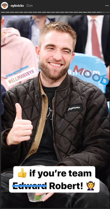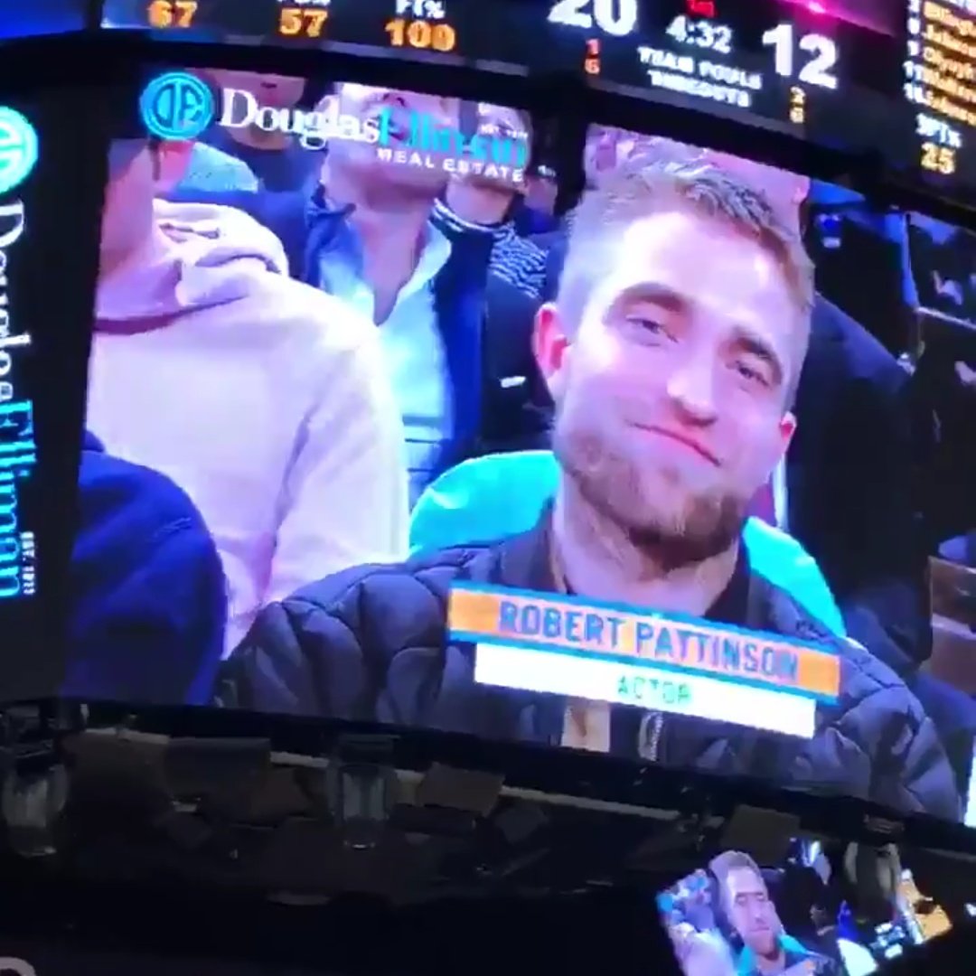 . Connie Nikas on the screen at the game #RobertPattinson #GoodTime booger_nose IG story