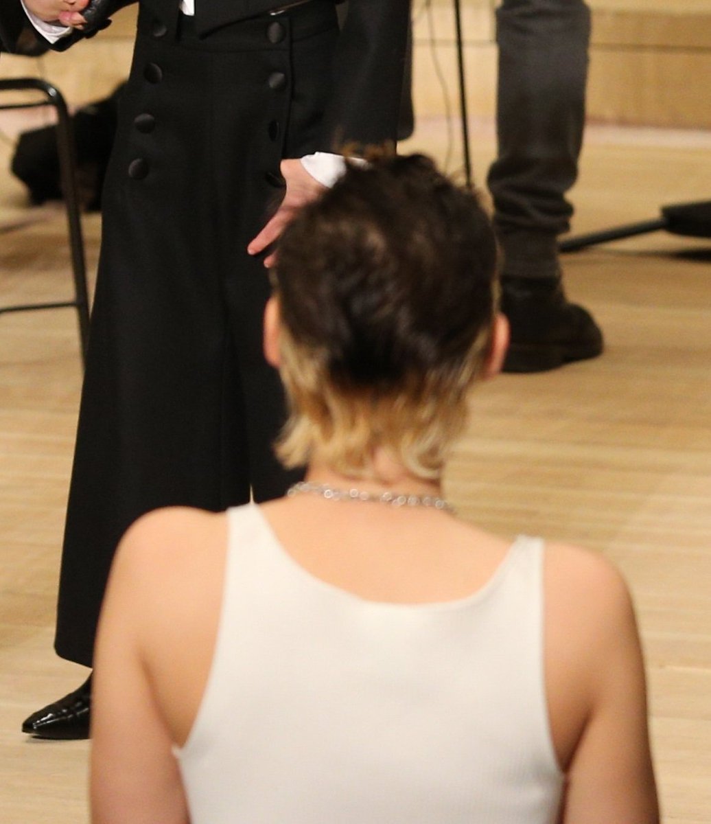 В конце дефиле перед зрителями появился сам Карл Лагерфельд. Он вышел на подиум, следуя сложившейся традиции, вместе со своим любимым крестником Хадсоном Кроэнигом, который принял участие в показе в качестве модели.