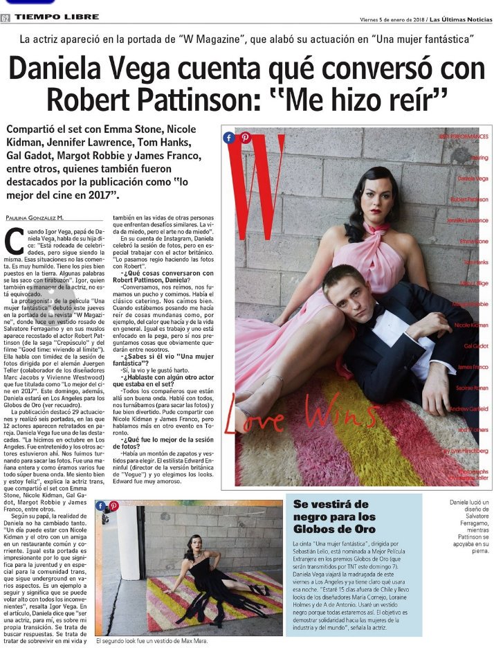 Для @wmag vol. 1 | 2018 Мы отлично провели время с Робертом. Робка седня герой дня в Чили чилийцы так радуется что их Даниэла впервые на обложке престижного издания да еще и с Робертом Паттинсоном Daniela Vega on Robert Pattinson "We talk,we laugh,we smoke and we had a "good time"