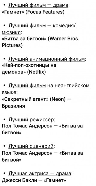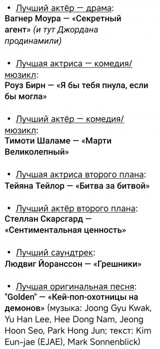 | Шаламешка получил Золотой глобус)) "Бесталанный, никчёмный и мерзкий" (С) Не мои слова, я считаю несколько иначе. А вот великий актёр всея Голливуда что то всё никак даже номинацию получить не может. У Шаламешки несколько номинаций на SAG , Оскар. Номинации и победа на Золотом глобусе. А у Маси... А у Маси доской для серфа по одухотворенному литсу и довильским поленом по затылку. Я конечно паясничаю))) Возможно у Робушки всё впереди. Файтин, Робушка