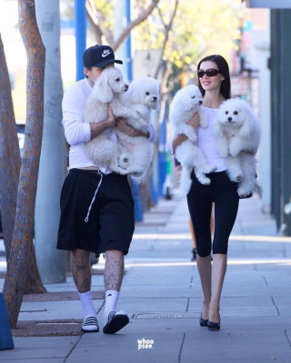 муж Анаколии Пельтц Бруклин Бекхэм выгуливает жену и пёсиков