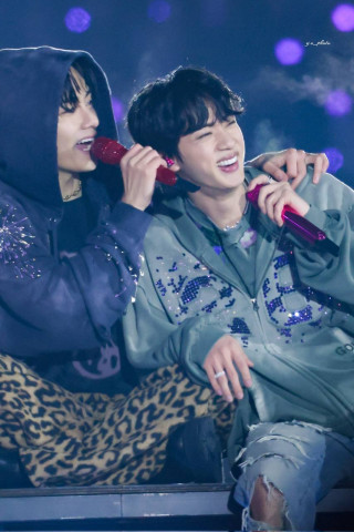 Чимин и Тэхён показывают на пальцах, что им 32 года. Хотя Ю. Корея перешла на международную систему, корейцы до сих пор отсчитывают возраст по лунному календарю. Чимин и Тэ родились в 1995 и им исполнится 31 год, но по лунному календарю им 32 года.