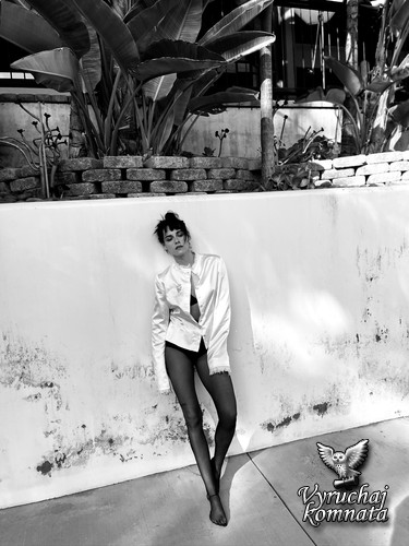 Кристен Стюарт в Лос-Анджелесе в жакете Colleen Allen, бюстгальтере Fleur du Mal, нижнем белье Commando, колготках Wolford и броши Chanel. Кристен для журнала CULTURED в своем старом доме в Лос-Анджелесе
