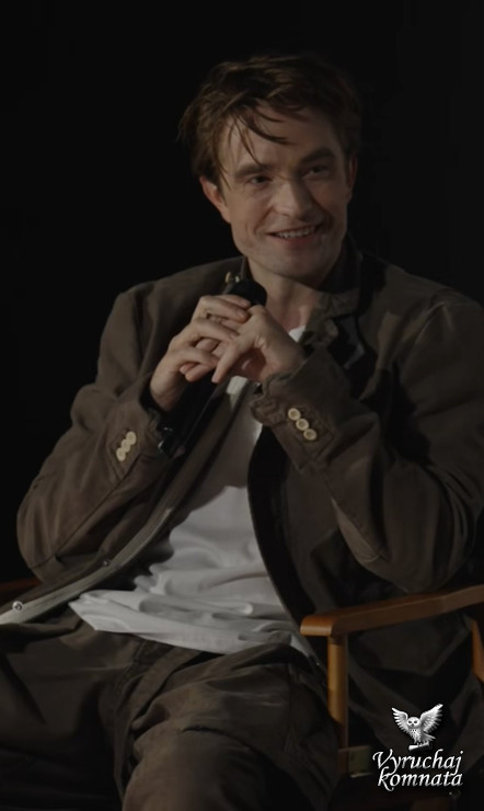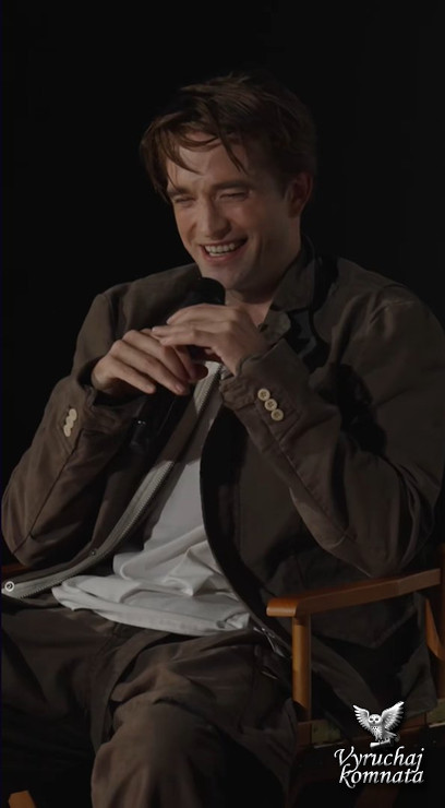 (Возврат в студию: Роберт Паттинсон повторяет жест из фильма, почесывая голову)