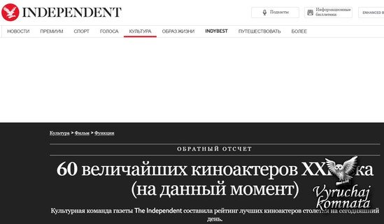 Культурная команда газеты The Independent составила рейтинг лучших киноактеров столетия на сегодняшний день.