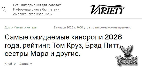Variety: Самые ожидаемые кинороли 2026 года, рейтинг: Том Круз, Брэд Питт, сестры Мара и другие.