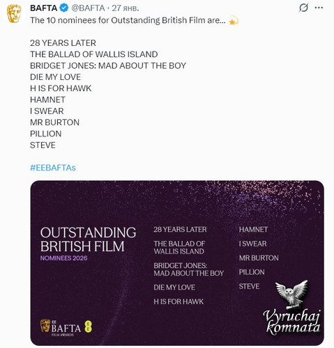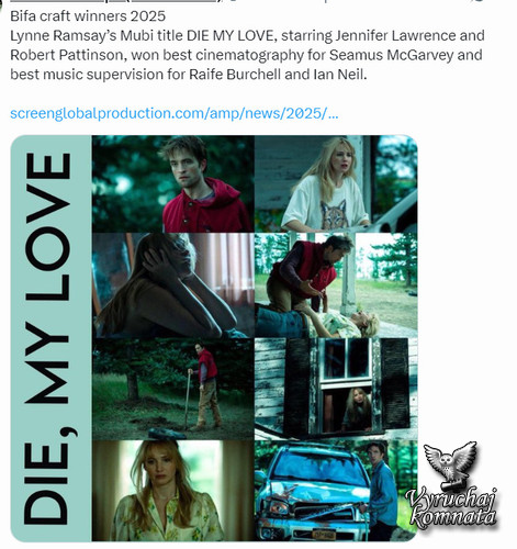 Фильм «Умри, моя любовь» с Дженнифер Лоуренс и Робертом Паттинсоном в главных ролях номинирован на премию «Выдающийся британский фильм» на церемонии вручения премии BAFTA 2026 года!