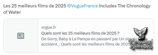 25 лучших фильмов 2025 года по версии Vogue France. Включает в себя «Хронологию воды».