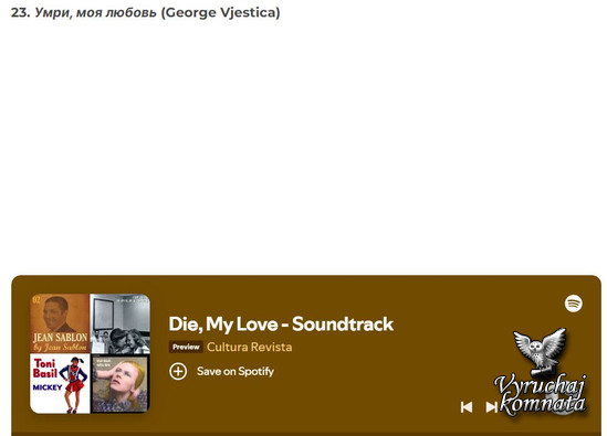 Критики Sight and Sound magazine выбрали 50 лучших фильмов года и "Умри, любовь моя" находится на 40-м месте