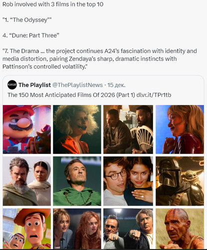 Фильмы Роберта Паттинсона в списках самых ожидаемых на 2026 год