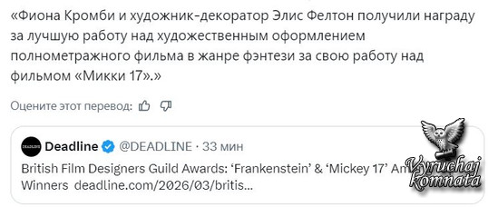 Фильм «Умри, моя любовь» с Дженнифер Лоуренс и Робертом Паттинсоном в главных ролях номинирован на премию «Выдающийся британский фильм» на церемонии вручения премии BAFTA 2026 года!