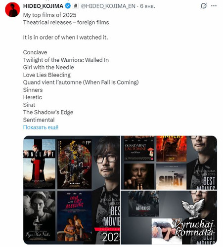 Топ фильмов 2025 от HIDEO KOJIMA, включая "ЛЛК"