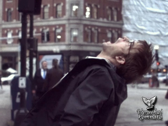 Эмма убегает в другой конец зала к ноутбуку. Слышны её шаги и хлопок двери. Чарли стоит посреди зала, тяжело вздыхает и потирает шею. Эмма включает другую, более ритмичную музыку.