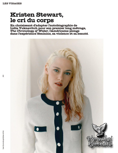 В кинематографическом ландшафте она — особенная артистка. Свободная женщина, освобожденная от взгляда других. Привилегированная соратница Оливье Ассайаса, первая американка, получившая «Сезар» за лучшую женскую роль второго плана, Кристен Стюарт теперь совершает заметный дебют в качестве режиссера. В «Хронологии воды» (сейчас в прокате) она адаптирует мемуары писательницы Лидии Юкнавич, опубликованные издательством 10/18, при поддержке дома Chanel. Автор и бывшая американская пловчиха рассказывает в них о жестоком обращении в семье, жертвой которого она стала в детстве, а также о своем пути к писательству. Как найти свой путь? Этот вопрос терзает и Кристен Стюарт, чей разум, кажется, пронзают тысячи идей в секунду. По случаю её визита на Фестиваль американского кино в Довиле, откуда она уехала с призом «Открытие», мы обсудили генезис фильма, её влияния и женщин-режиссеров, которыми она восхищается. Нет сомнений: родился новый режиссер.