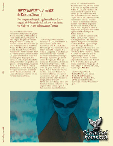 Автор важных эссе «Женский взгляд» (Le Regard féminin) и «Культура инцеста» (La Culture de l'inceste) Ирис Брей встретилась с Кристен Стюарт по случаю выхода фильма «Хронология воды». Диалог о травматической памяти, поиске точного языка для разговора об изнасиловании и инцесте и о присвоении собственных желаний.