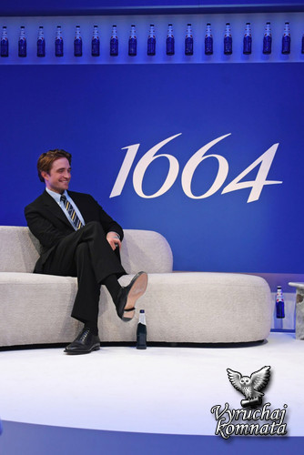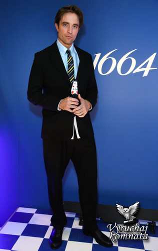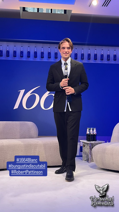 Первый взгляд на Роберта Паттинсона в роли посла 1664 года. «Отпразднуйте хороший вкус с Робертом Паттинсоном и 1664».