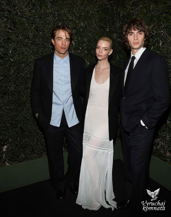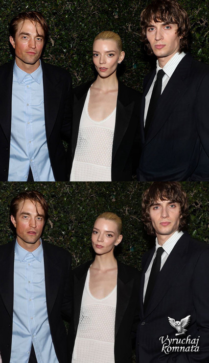 Роберт Паттинсон с Аней Тейлор-Джой и Малкольмом Макреем на пред-оскаровском ужине журнала W Magazine x Dior вчера.