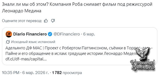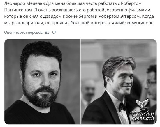 Вопросы о Леонардо Меделе и Роберте Паттинсоне Роберт Паттинсон примет участие в фильме чилийского режиссера.