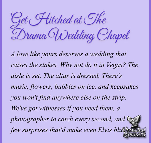 «Каждая пара, переступившая порог нашей часовни, уходит немного легче, немного удачливее и намного увереннее в том, что сделала ставку на правильного человека. В этом и заключается отличие The Drama Wedding Chapel», — говорится на сайте. «Мы обещаем церемонию, которая будет спонтанной, гламурной и немного опасной. Мы обещаем полное шоу в стиле Вегаса, потому что вы проделали весь этот путь не ради обыденности. Что здесь произойдет? Вам захочется забрать с собой каждую секунду этого события».