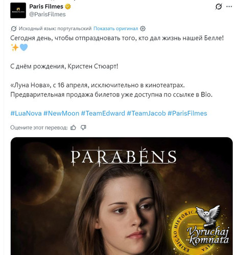 Аккаунт Академии тоже вспомнил о дне Рождения Кристен