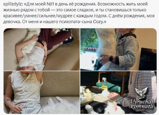 spillzdylz: «Для моей №1 в день её рождения. Возможность жить моей жизнью рядом с тобой — это самое сладкое, и ты становишься только красивее/умнее/сильнее/мудрее с каждым годом. С днём рождения, моя девочка. От меня и нашего психопата-сына Cozy.»