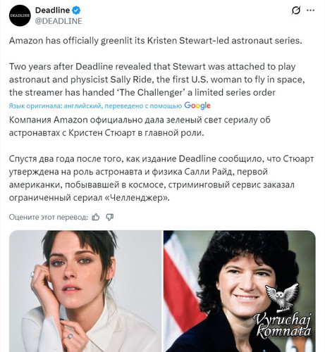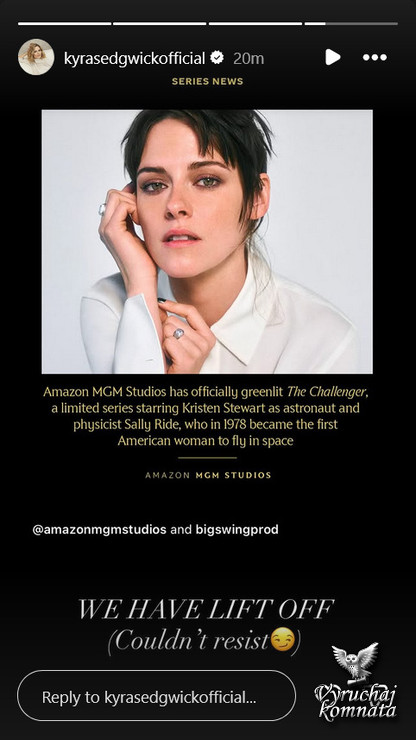 Киностудия Amazon MGM Studios официально дала зеленый свет мини-сериалу «Челленджер», в котором Кристен Стюарт сыграет астронавта и физика Салли Райд, ставшую в 1978 году первой американской женщиной, побывавшей в космосе.