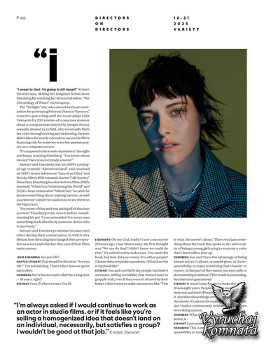 Печатный выпуск рубрики «Режиссёры о режиссёрах» вышел 31 декабря, а видеоверсия беседы выйдет 6 января. Также 31-го числа Variety опубликовали статью о Кристен в своем списке «10 режиссеров, за которыми стоит следить в 2026 году»!